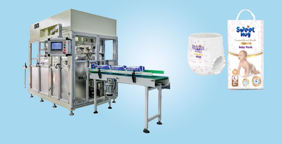 P28包裝機是主要用于衛(wèi)生巾、嬰兒紙尿褲(小包)、嬰兒護(hù)理墊、棉柔巾等裝袋封口的全自動包裝機。